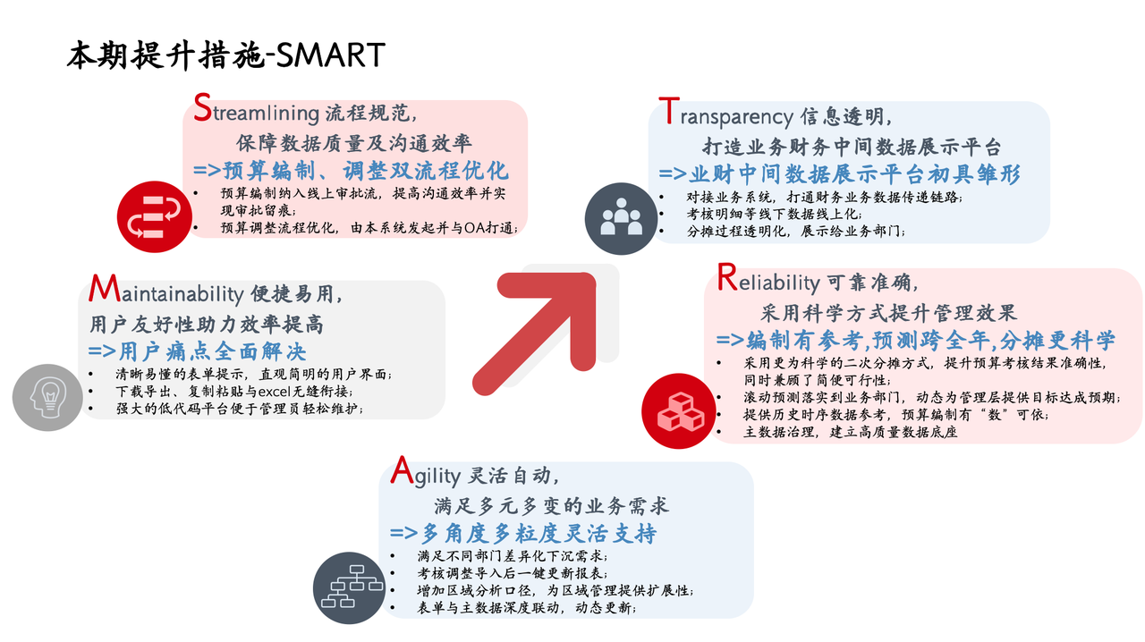 编报效率:预算编制周期从 2 个月缩短至 1 个月,调整流程从 1 周压缩至 1-2 天,财务人员数据处理时间减少 40%,可专注于业务分析与决策支持;
