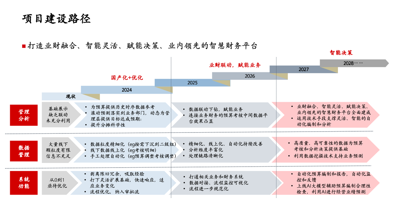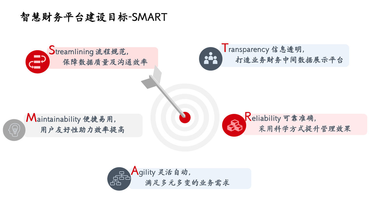 基于行业痛点与企业战略,项目以智慧财务平台为载体,明确三大核心目标: