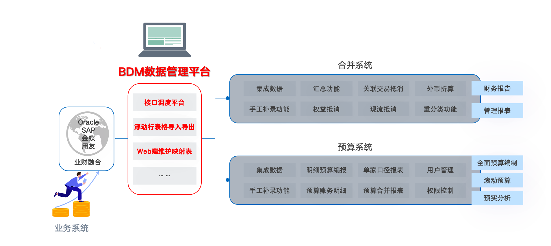 强大的系统协同能力-自主研发BDM数据管理平台,可以有效支撑核算侧到管理侧的数据协同