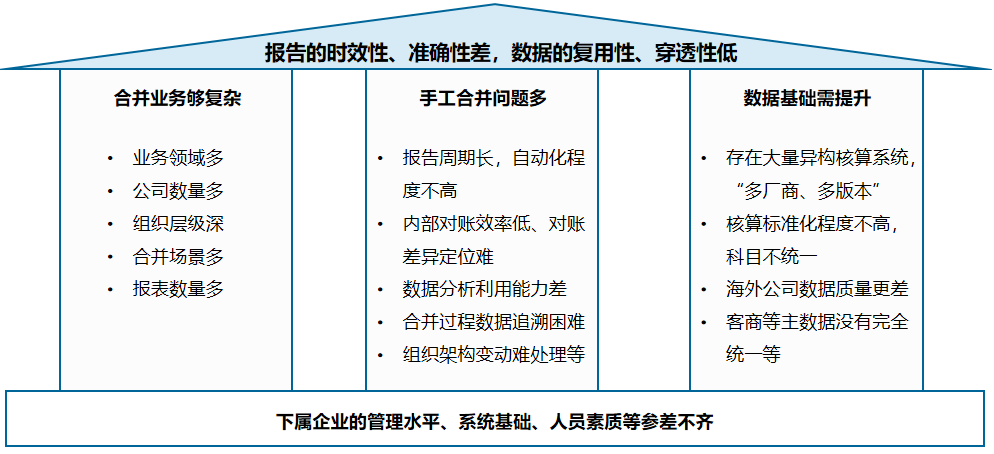 大型集团企业在合并报表过程中,普遍存在以下痛点: